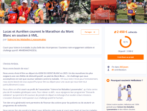 VML Solidarity Bib is a charitable initiative by the Vaincre les Maladies Lysosomales (VML) association, in partnership with the Chamonix Sports Club, offering 55 participants the chance to earn their race bib by raising donations.