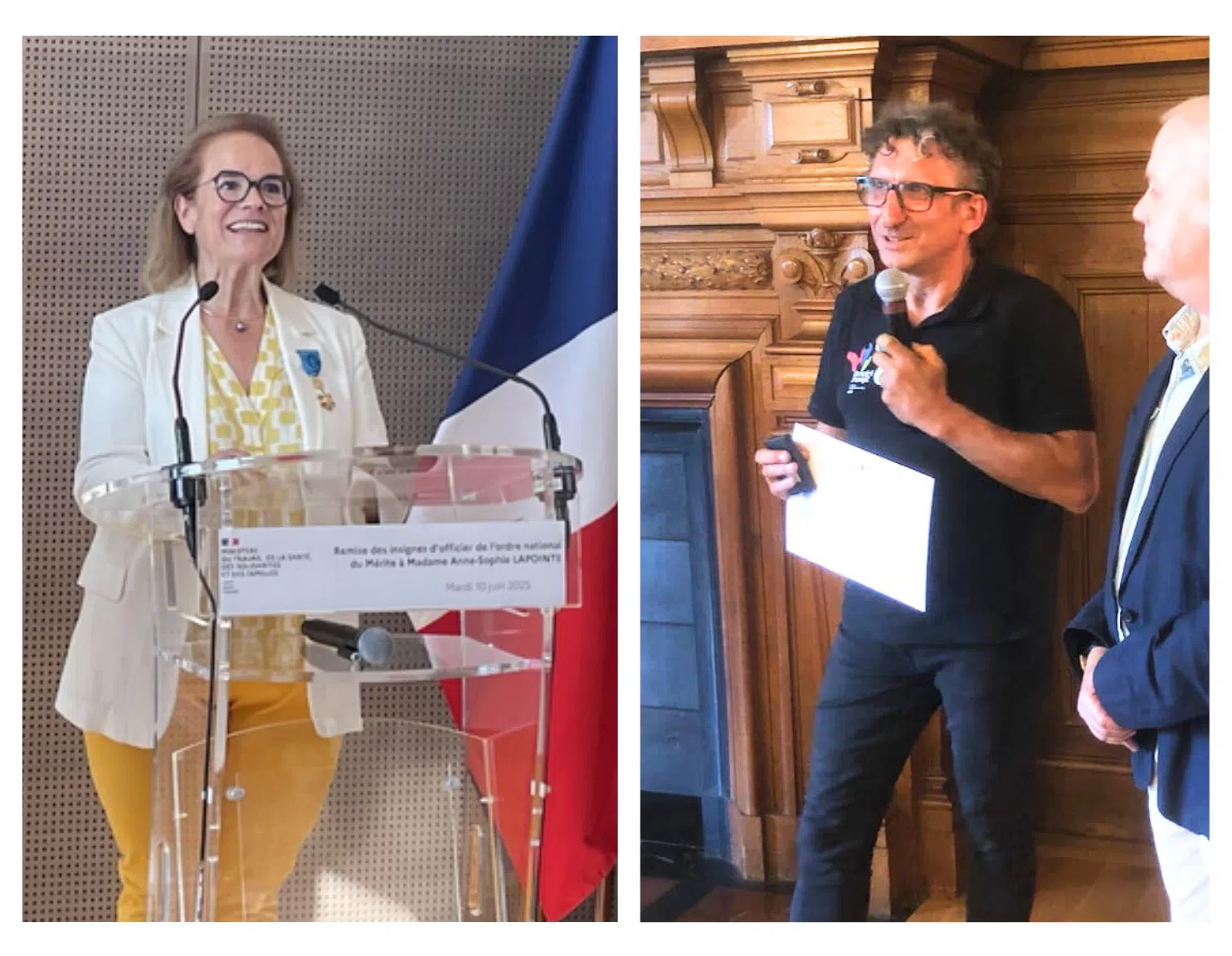 Un peu, beaucoup … et passionnément pour certains des adhérents VML. Alors nous sommes fiers quand Anne-Sophie et Thierry sont reconnus pour leur mérite et engagement pour VML et pour les autres. Toutes nos félicitations Anne-Sophie LAPOINTE (PhD) qui s’est vu remettre par Catherine Vautrin, Ministre de la santé, les insignes d’officier de l’ordre national du mérite. Après avoir était présidente de Vaincre les maladies Lysosomale, Anne-Sophie se consacre aujourd’hui à faire avancer la cause de toute les maladies rares au sein de la direction générale de l’offre de soins (DGOS).